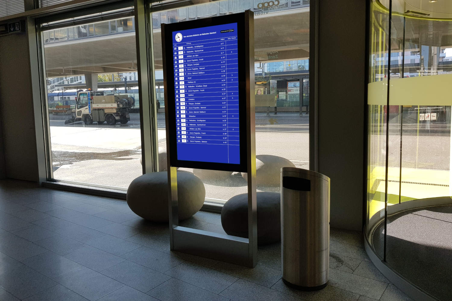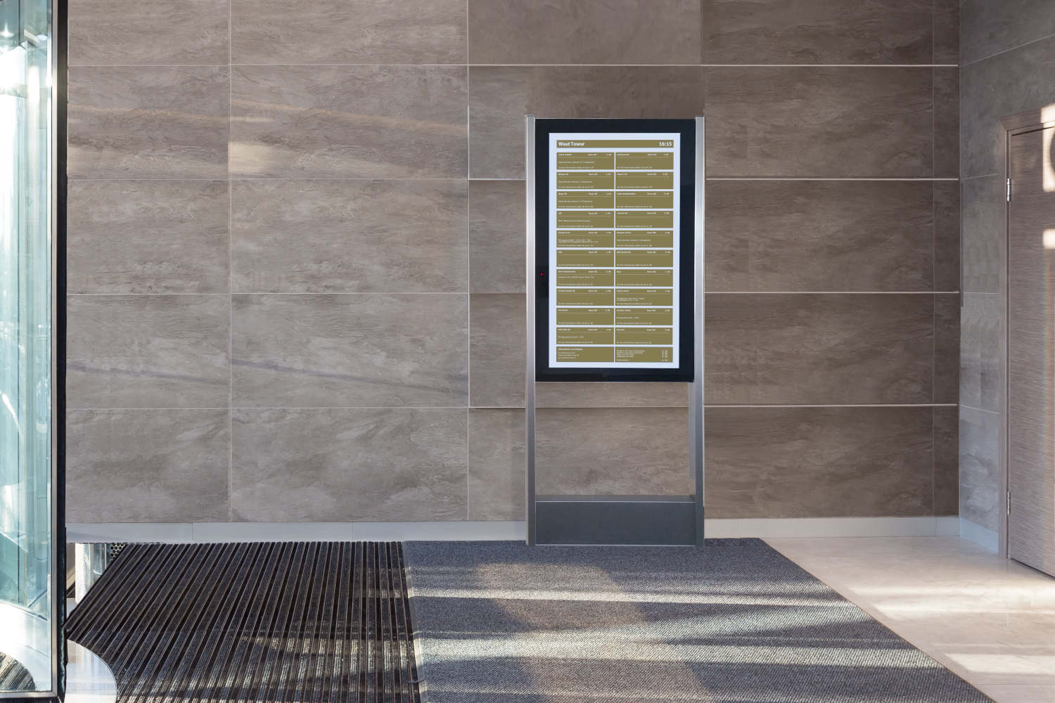 The classic signage in the interior of offices and commercial buildings, but also in private and public administrations with aluminium panels, paper or on glass is no longer up to date. Tenants change their names or the subtenant must also be integrated into the signage system. Short-term changes and temporary tenants must be taken into account.